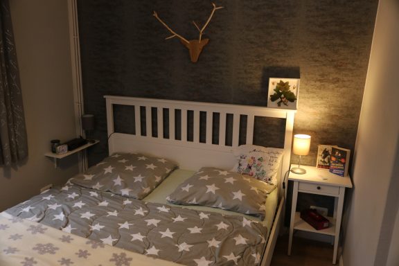 In der Wohnung befindet sich im modernen Schlafzimmer ein