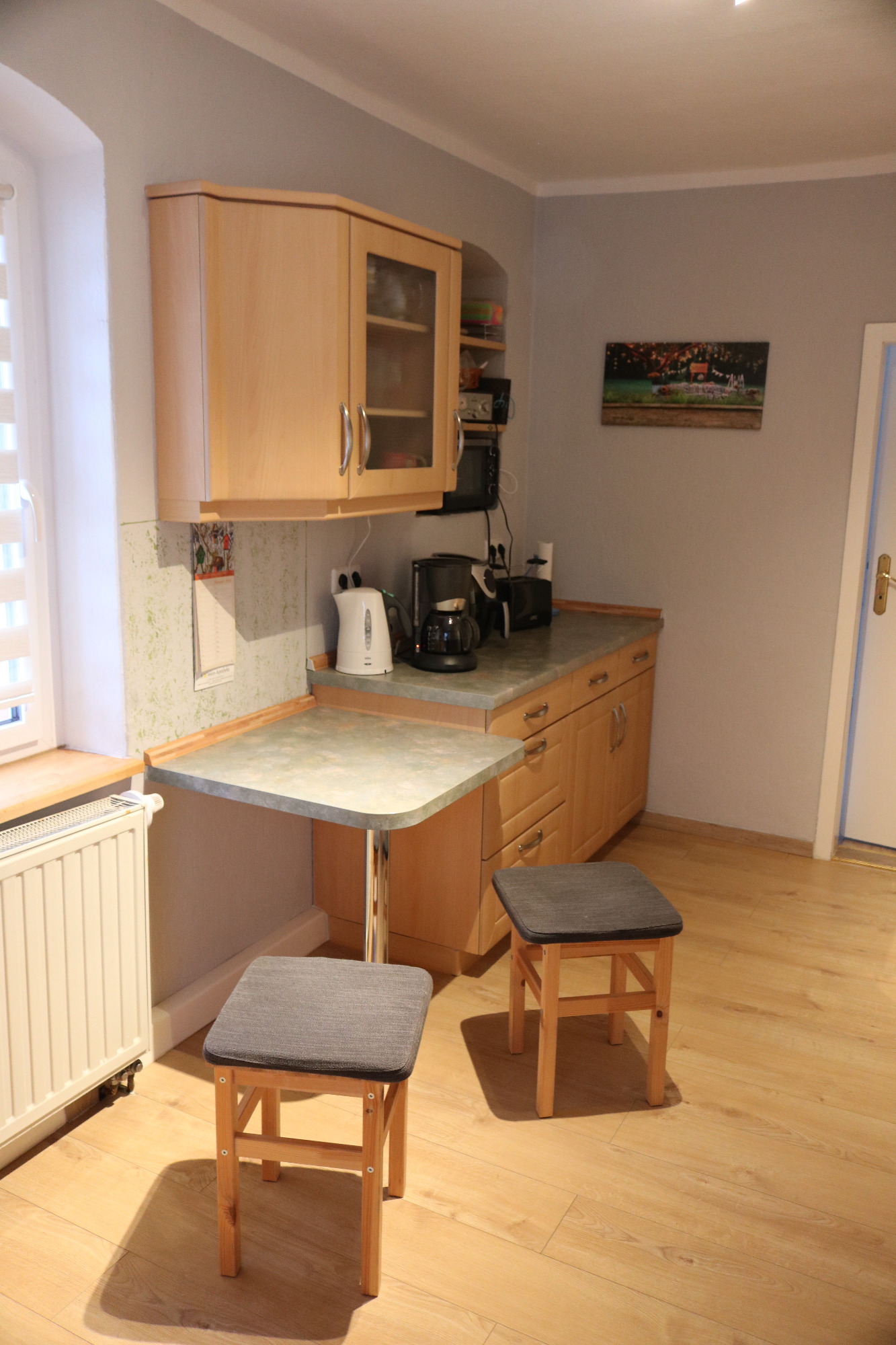 Die Wohnung "Anneliese" enthält ausserdem Sat-TV und WLAN Zugang. Die helle Küche wartet mit modernem Geschirrspüler, Elektroherd mit Umluftbackofen, Kaffeemaschine, Toaster, Kühlschrank, Wasserkocher sowie einer Heißluftfritteuse auf Ihre Nutzung.